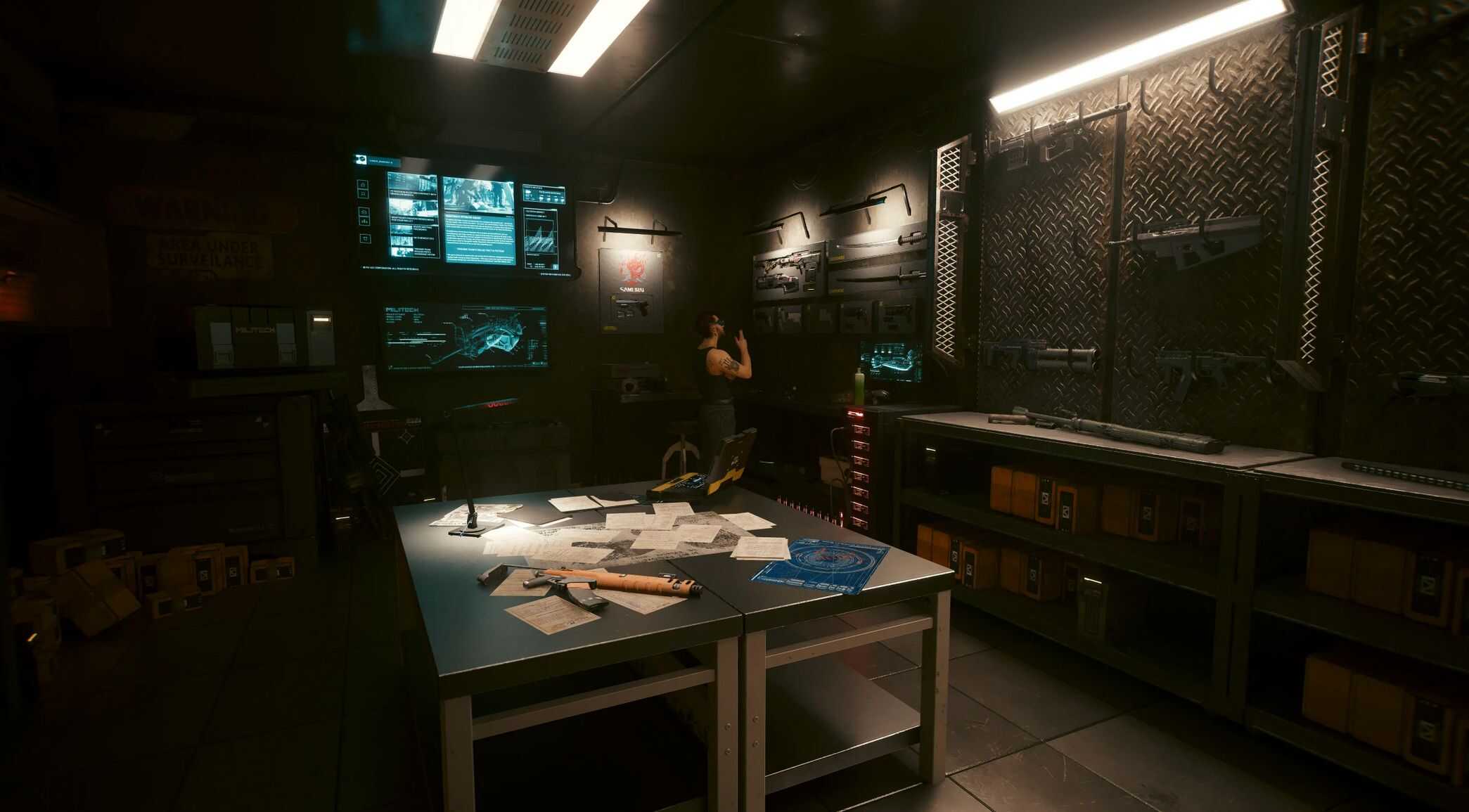 A working shooting range, along with a stash that correctly displays weapons