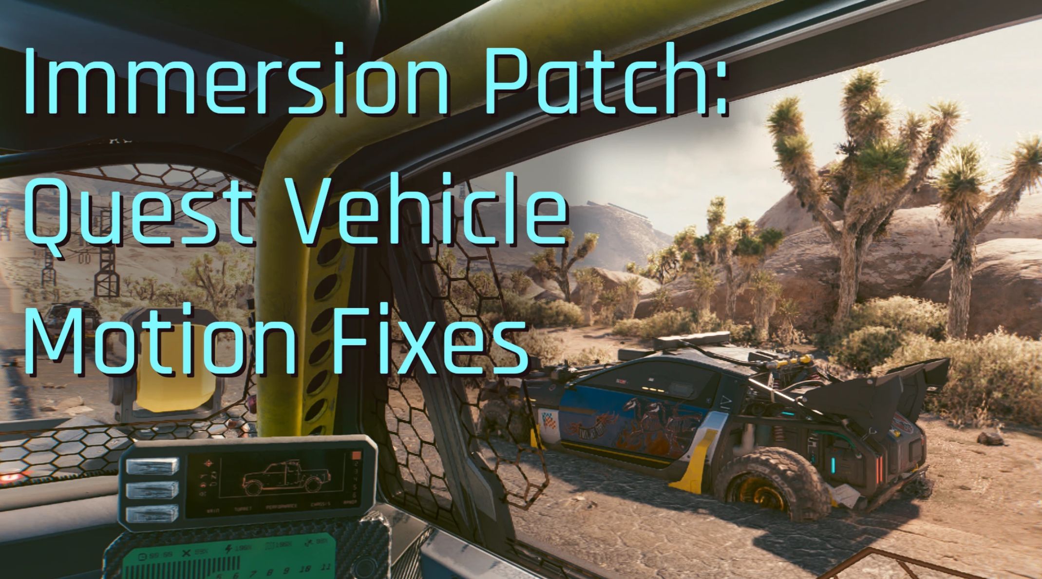 This mod aims to fix immersion-breaking quest vehicle motion glitches.