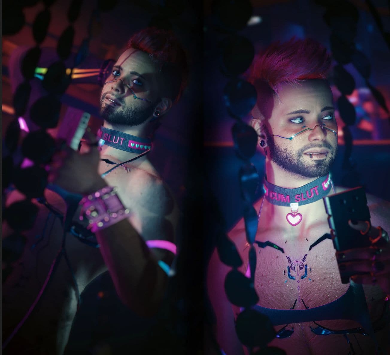 It’s a collar accessory with some pendants, studs and text additions. Pendants and holder 02 are using Fingers collar’s physics and it’s soooooo freaking bad and fragile, that’s why i had to sacrifice perfect weights for basically the whole thing. Moving V’s head too much will send your eyes into a coma and i apologize for that, but it dangles and looks fire.